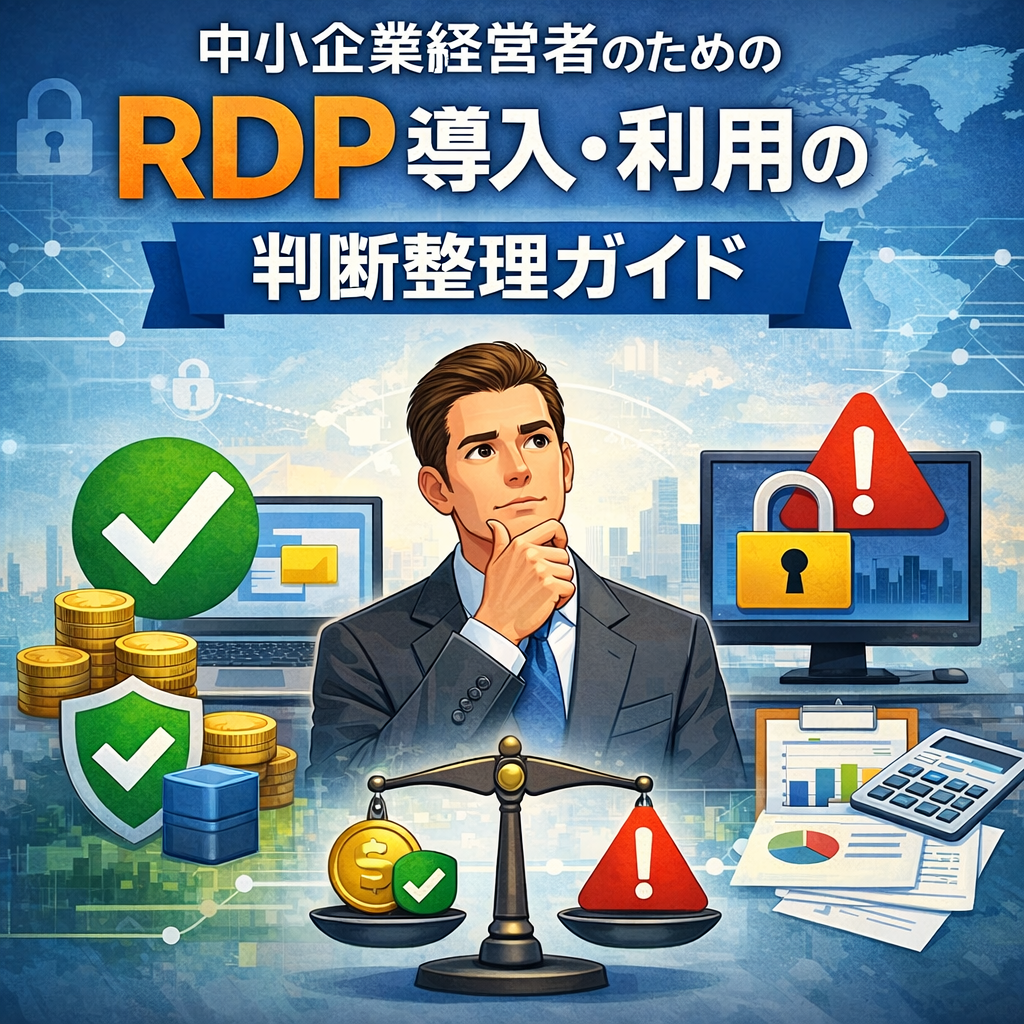 ― 便利さとリスクを正しく理解するために ― 在宅勤務や外出先からの業務対応が当たり前になり、「社外から社内PCに接続できる仕組み」として RDP(リモートデスクトップ) を使っている、あるいは検討している中小企業も多いのではないでしょうか。 RDPはW... -