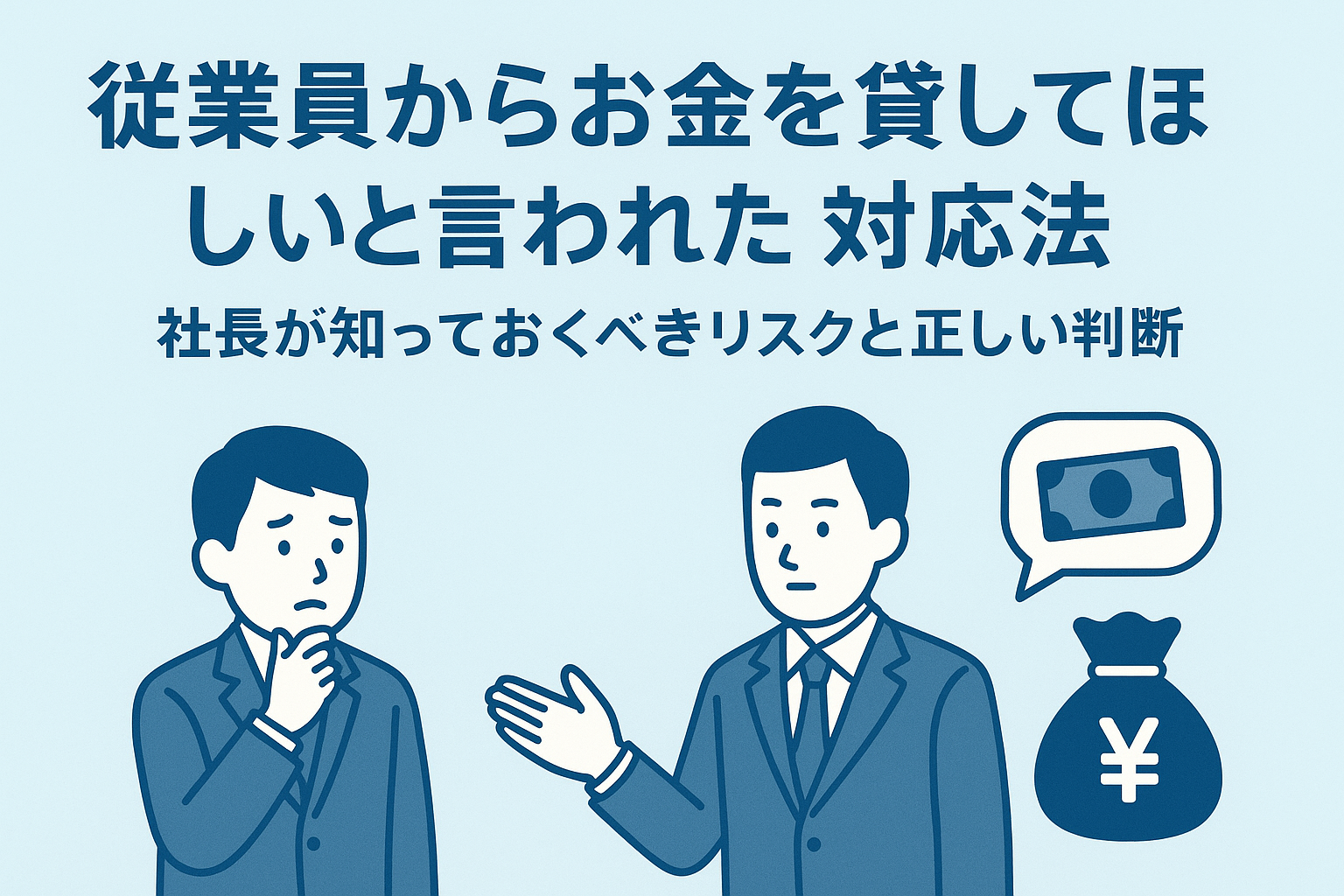 はじめに 従業員から「お金を貸してもらえませんか」と相談を受けることは珍しいことではありません。しかし安易に対応すると返済トラブルや社内の不公平感につながることもあります。経営者としてどう判断しどう対応すべきかを整理します。 1.基本方針:... -